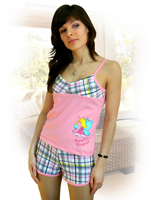 Майка из интерлока. Шорты короткие из интерлока, клетка.