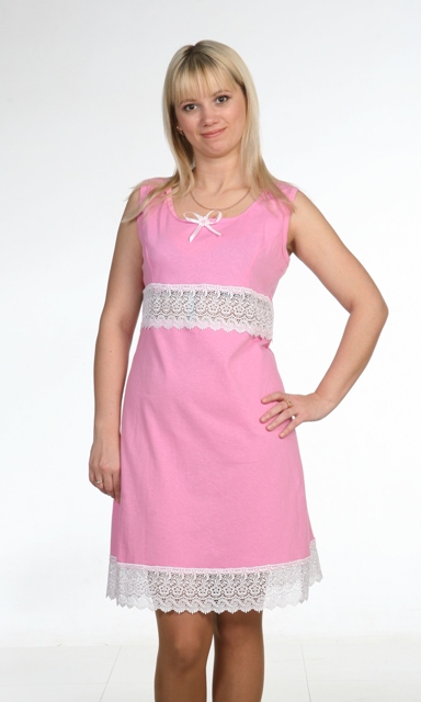 Ночная сорочка из гладкокрашенной кулирки, отделка кружевом.